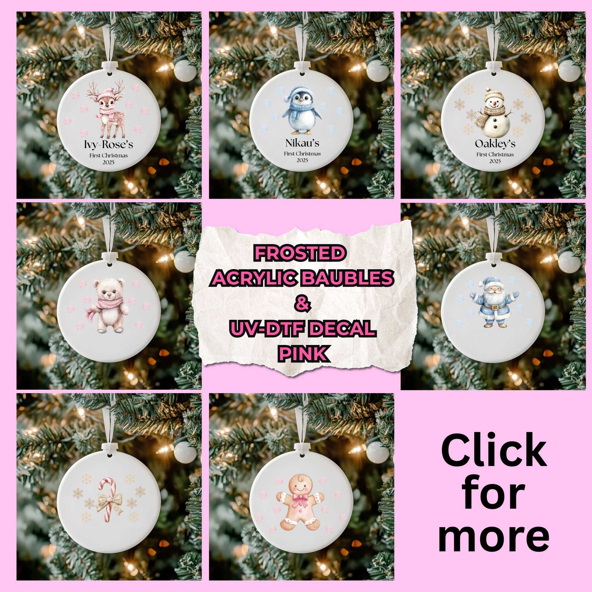Add a touch of elegance and personalisation to your Christmas decor with a Frosted Acrylic Baubles, These ornaments combine a soft, frosted finish with crisp, vibrant designs that won’t peel, fade, or scratch.