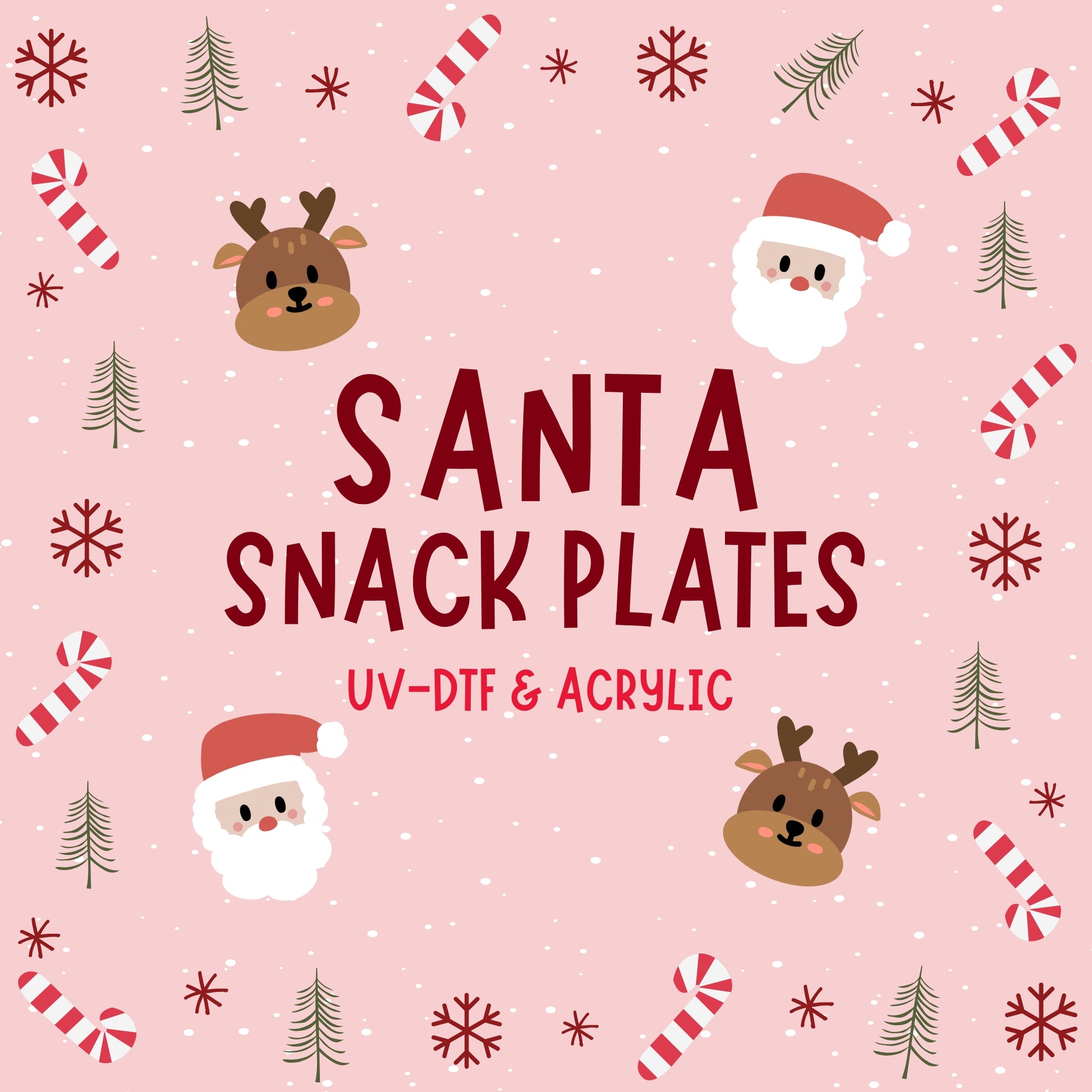 Leave a special treat for Santa and his friends this year with our adorable Santa Snack Plates. Available in 6 different designs. This product includes the white acrylic plate and a UV-DTF decal to apply. There is also room to personalise with your children's names.